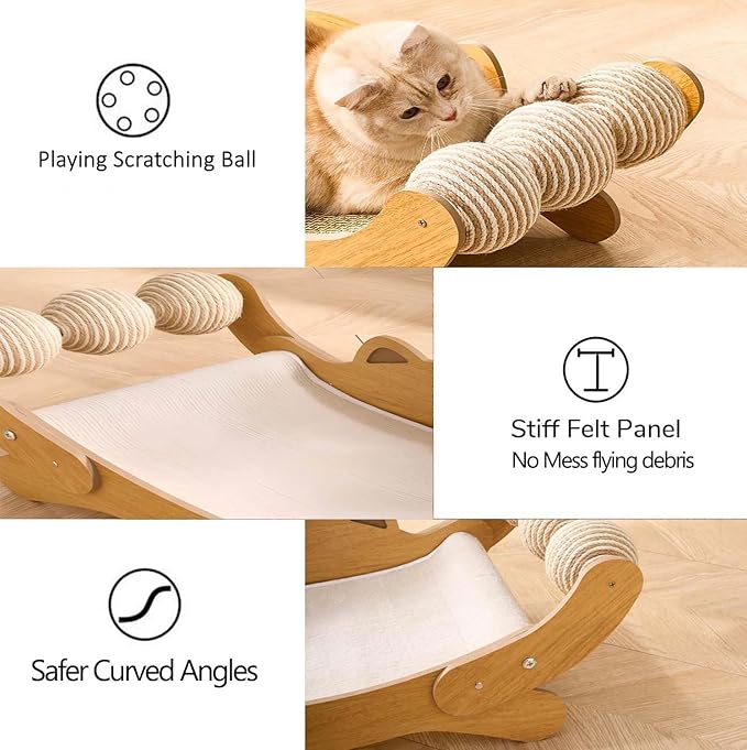 - 【3-in-1 Multifunctional Cat Scratcher Bed】Tired of your furniture falling victim to your cat's claws? We've got you covered! Our cat scratcher bed features a unique design that combines a cat scracther bed, scratch pad, and cat toys into one product. Daily scratching sharpens their claws, maintains the proper shape of their nails, and satisfies their natural instincts.