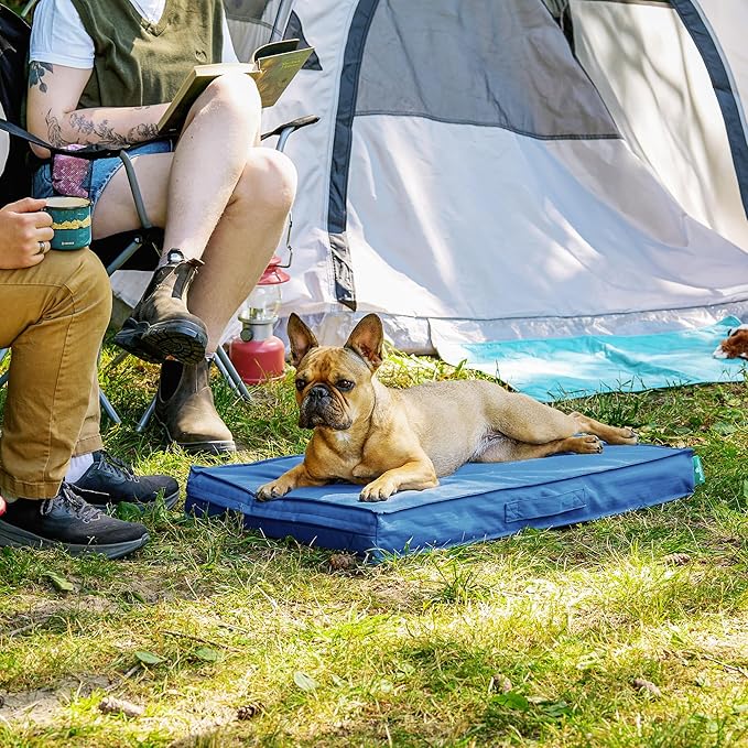 FurHaven Cooling Dog Bed – Medium Foam Mattress for Joint Pain Relief, Waterproof Liner, Removable Washable Cover, Durable for Outdoor Use, Deluxe Grid Indoor/Outdoor Bed – Blue, Medium