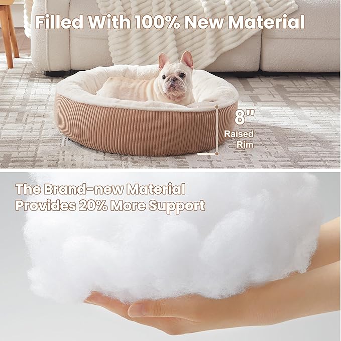 - Calming & Comfortable: Our donut pet bed features a soft, plush faux fur sleeping area for comfort and relaxation. The raised corduroy sides create a calming space that helps reduce anxiety and keeps your fur baby feeling safe