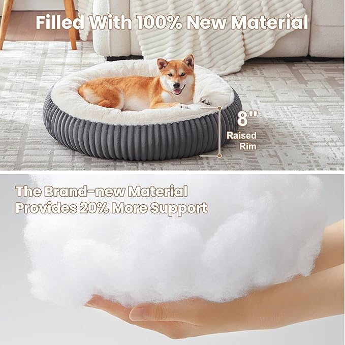 - Calming & Comfortable: Our donut pet bed features a soft, plush faux fur sleeping area for comfort and relaxation. The raised milk plush sides create a calming space that helps reduce anxiety and keeps your fur baby feeling safe