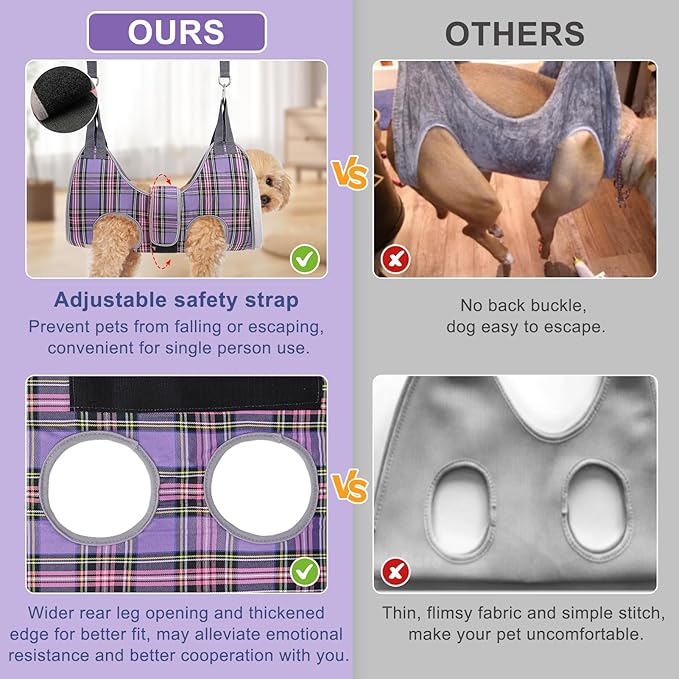 BEAUTYZOO Dog Grooming Hammock for Small Dogs Cat- Dog Sling for Nail Trimming/Clipping- Dogs Hanging Harness Holder with Thick Fabric Neck Support & Strap Restraint Claw Care, Purple S