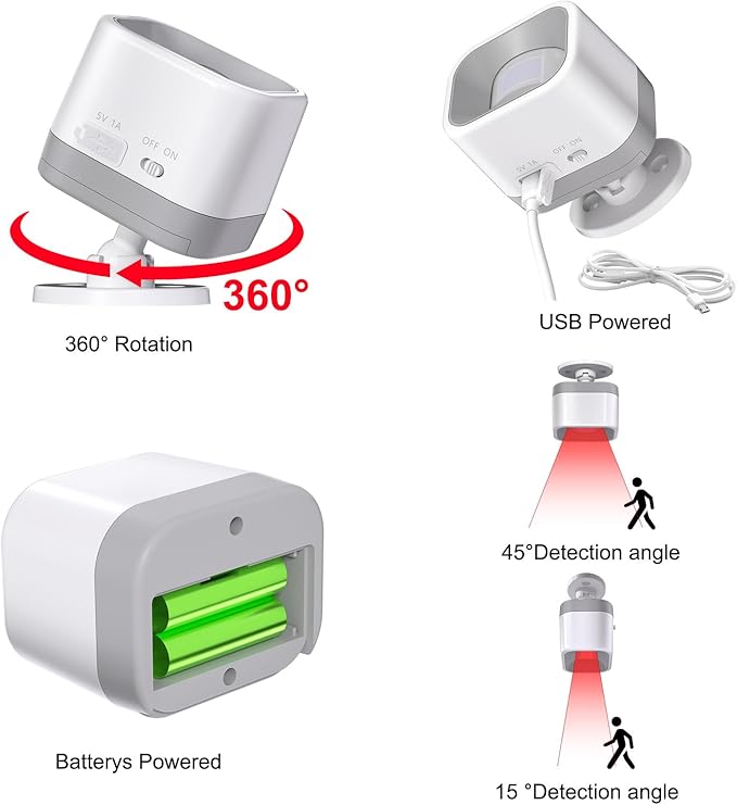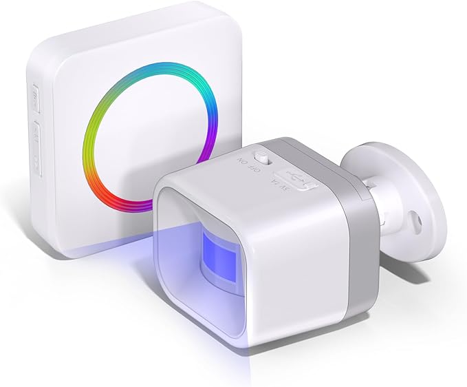 - Multi-Purpose Monitoring & Easy Installation: More than just a doorbell. Use it as a caregiver pager to detect if an elderly parent or toddler wanders near dangerous stairways. The system installs in seconds with the included adhesive tape or screws. The receiver supports dual power options (USB or batteries) for flexible placement anywhere in your home.