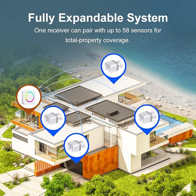 - Reliable 500ft Wireless Range & Smart Memory: Powered by strong signal technology, this system penetrates walls and floors with a range up to 500ft (150m). Ideal for monitoring driveways, mailboxes, or detached basements. The built-in memory chip preserves your last set melody and volume level even after a power outage or battery change.