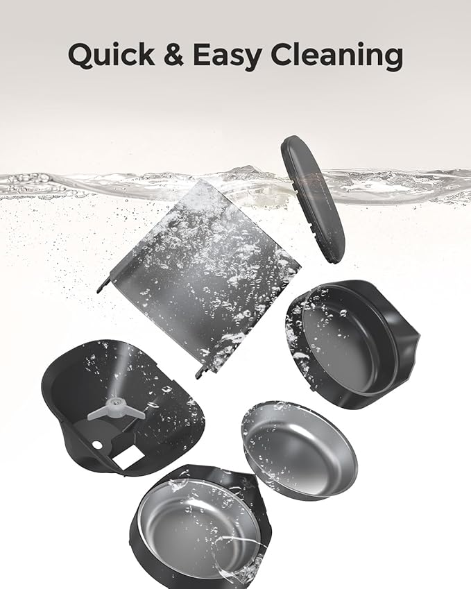 - Easy-to-Clean Design & Pet-Safe Materials: Crafted from durable ABS and 304 food-grade stainless steel, this automatic dog feeder is safe, hygienic, and built to last. All food contact parts are detachable —perfect for keeping your automatic pet feeder clean with minimal effort.