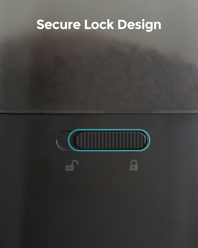 - Secure, Anti-Bug Construction with Lock Lid: The patented dispensing structure prevents clogs and stops bugs from entering the food storage. The top lid locks firmly to prevent spills or tampering by pets. This smart dog food dispenser keeps kibble fresh and protected while preventing overfeeding or messes.