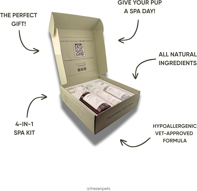 - THOUGHTFUL GIFT FOR DOG PARENTS Packaged as an elegant set, ZenSpa makes an elevated gift for new puppies, rescue dogs, or any pet family who cares about clean ingredients and a gentler grooming routine.