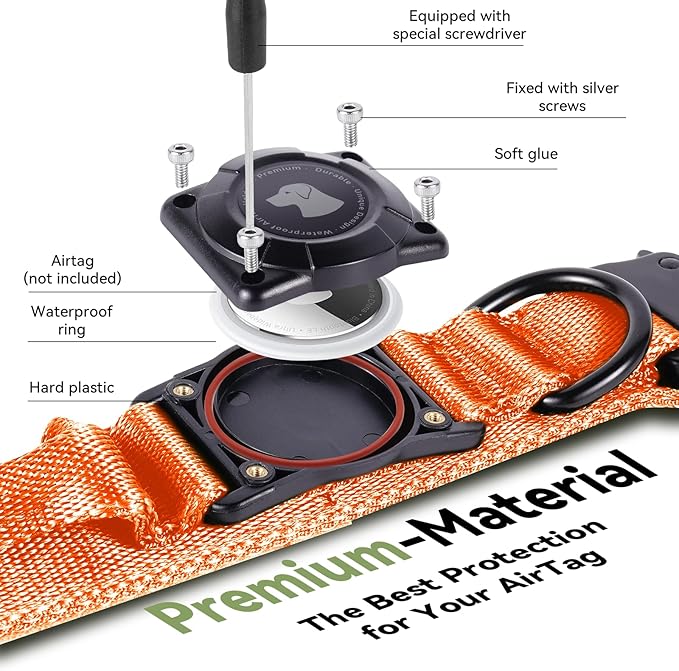 - Passionate playing water resistant collar: GPS dog collar made with an integrated holder with a waterproof, dustproof sealing ring. The sturdy design ensures your dog can swim, run and play in the rain without worrying about damaging the AirTag.