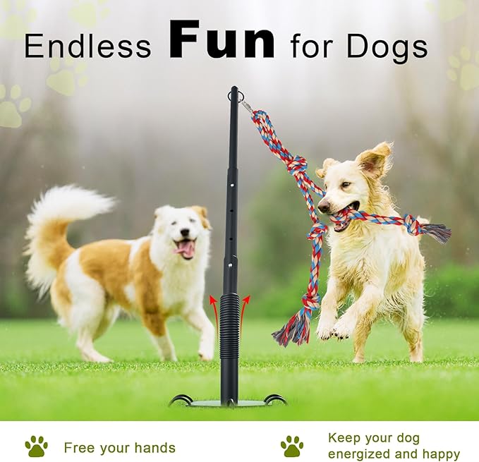 - Easy Setup & Customizable Play Options: Compared to the traditional dog tether toys, our interactive tug toy setup just in mins, with no complicated setup whatsoever! Height-adjustable, and the carabiner clip design makes it easy to switch out toys or ropes. Customize the experience to match your dog's size and preference. Keep playtime fresh and exciting!