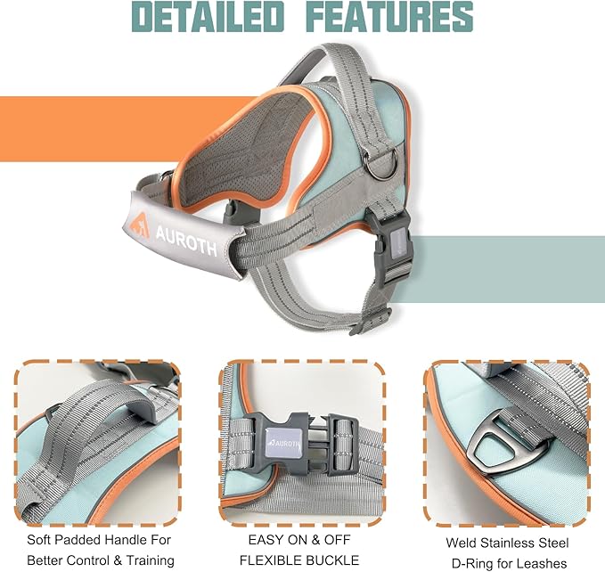 AUROTH Dog Harness and Leash Set, Soft Padded Dog Vest with 5.25FT Dog Leash, No Choke, Easy On Pet Vest, Adjustable Reflective No Pull Dog Harness for Large Dogs, Easy Walking and Training