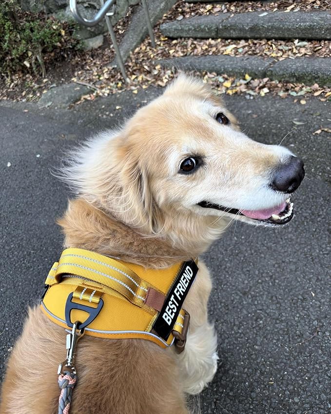 - Upgraded Design with Reflective Safety: Our no pull dog harness features an optimized structure that prevents choking and discomfort by evenly distributing pressure across your dog’s body—eliminating neck strain. For added safety, reflective elements provide high visibility during nighttime walks, keeping your pet secure in low-light conditions.