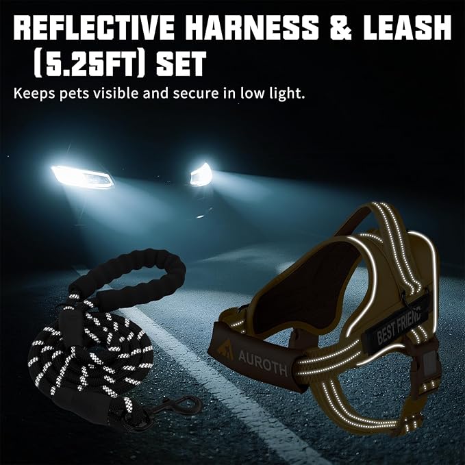 AUROTH Dog Harness and Leash Set, Soft Padded Dog Vest with 5.25FT Dog Leash, No Choke, Easy On Pet Vest, Adjustable Reflective No Pull Dog Harness for Large Dogs, Easy Walking and Training