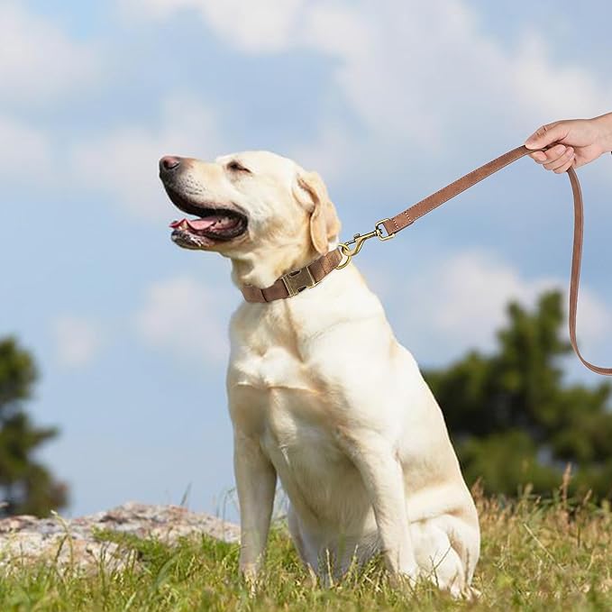 Didog Soft PU Leather Dog Collar, Stylish Quick Released Dog Collar for Large Dogs, Easy Clean Adjustable Pet Collar for Daily Walking, Brown, XL Fit 17-27" Neck