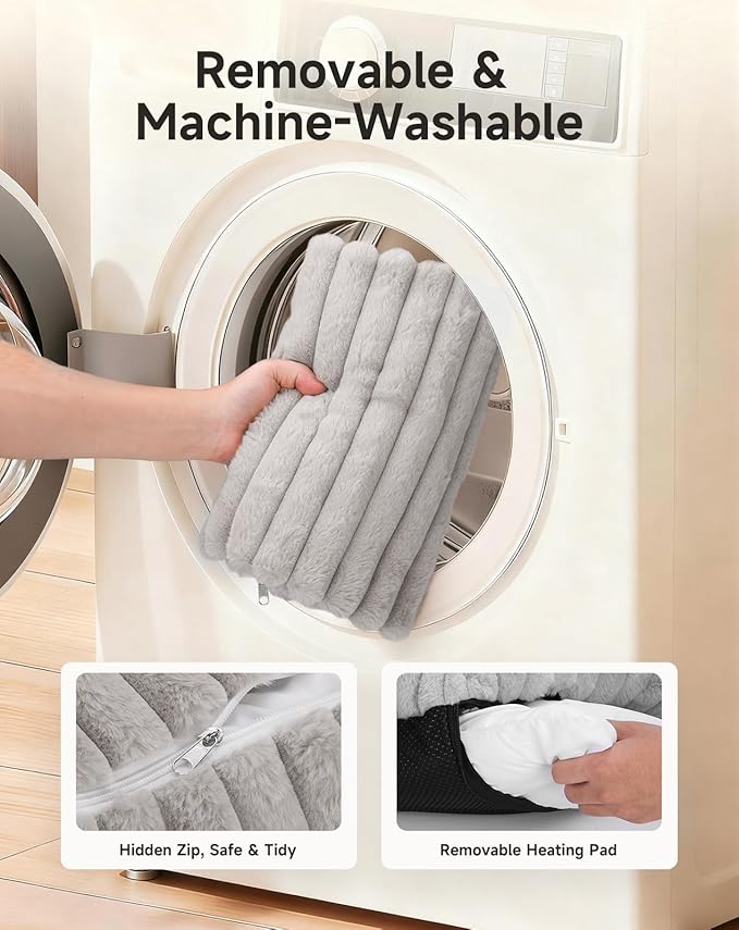 - Safety Protection: FCC/UL certified. The cat heating pad features built-in overheat protection (auto-shuts off if temperatures spike) and waterproof surfaces, guarding against burns or electrical issues from pet accidents. And the cord is bite-proof to protect your curious fur baby