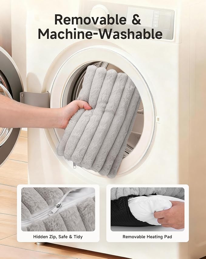 - Safety Protection: FCC/UL certified. The cat heating pad features built-in overheat protection (auto-shuts off if temperatures spike) and waterproof surfaces, guarding against burns or electrical issues from pet accidents. And the cord is bite-proof to protect your curious fur baby.