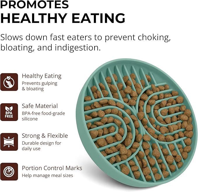 - DURABLE FOOD-GRADE CONSTRUCTION - Crafted from high-quality silicone that's completely food-safe. This dog slow feeder bowl withstands daily use and repeated washing while maintaining its shape and effectiveness for years of reliable service.