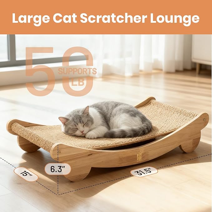 - Extra-Large Design – Both the cat scratcher lounge and the cat scratcher mat measure 31.5 inches in length, providing plenty of space for cats to stretch, scratch, or lounge. Whether used as a spacious cat scratcher bed, a floor cat scratch pad, or a wall cat scratcher, it’s perfect for multi-cat households seeking comfort and versatility