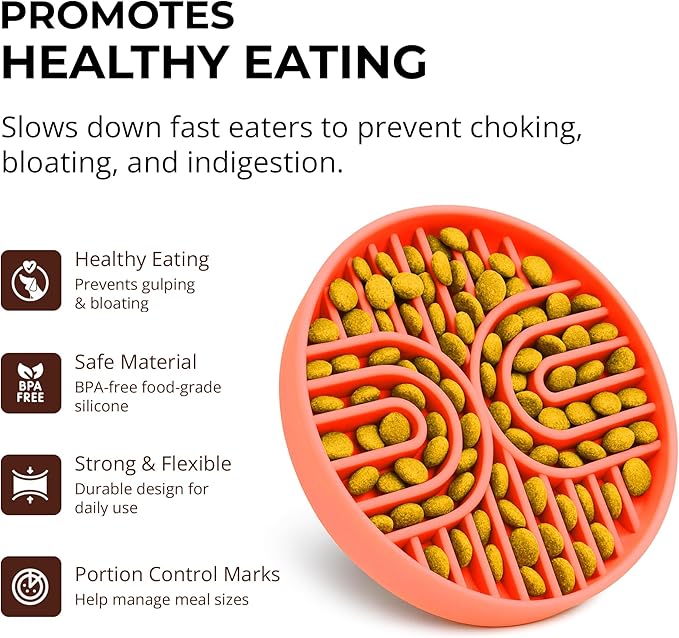 - DURABLE FOOD-GRADE CONSTRUCTION - Crafted from high-quality silicone that's completely food-safe. This dog slow feeder bowl withstands daily use and repeated washing while maintaining its shape and effectiveness for years of reliable service.