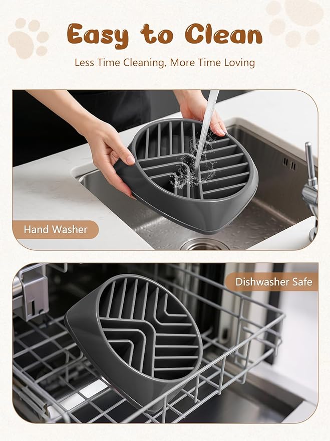 • Easy to Clean and Maintain: Cleaning your dog slow feeder bowl is a breeze! Its smooth surface prevents food from getting stuck, and it's dishwasher-safe for easy cleaning. Whether your dog enjoys dry, wet, or raw food, this slow feeder dog bowl is easy to maintain.
