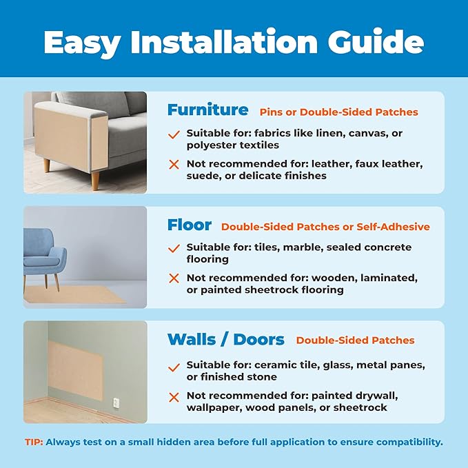 - Instant Furniture Rescue – Peel & Stick Cat Scratcher - Protect your sofa, carpet by simply peeling off the release film and pressing this self-adhesive cat scratching mat into place. Say goodbye to claw marks and shredded upholstery!