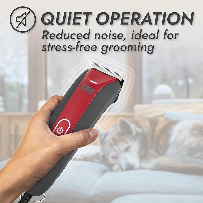 Kong 2-Speed Dog Clipper Grooming Kit – Stainless Steel Blade, Waterproof, LED Spotlight, 6 Guide Combs, 8-Foot Cord, Ergonomic Handle – Red/Gray, Medium Coat Types