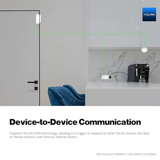 - Device-to-Device Communication – Supports YoLink’s D2D technology, allowing it to trigger or respond to other YoLink devices, like door or motion sensors, even without internet access.