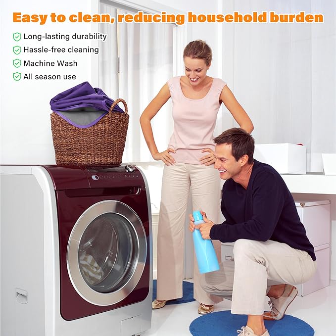 • 【Waterproof Bed Blanket】 Waterproof coating applied inside this couples blanket prevents moisture and liquids from leaking through, protect your mattress from stains and moisture, ensuring a dry and comfortable sleeping surface.