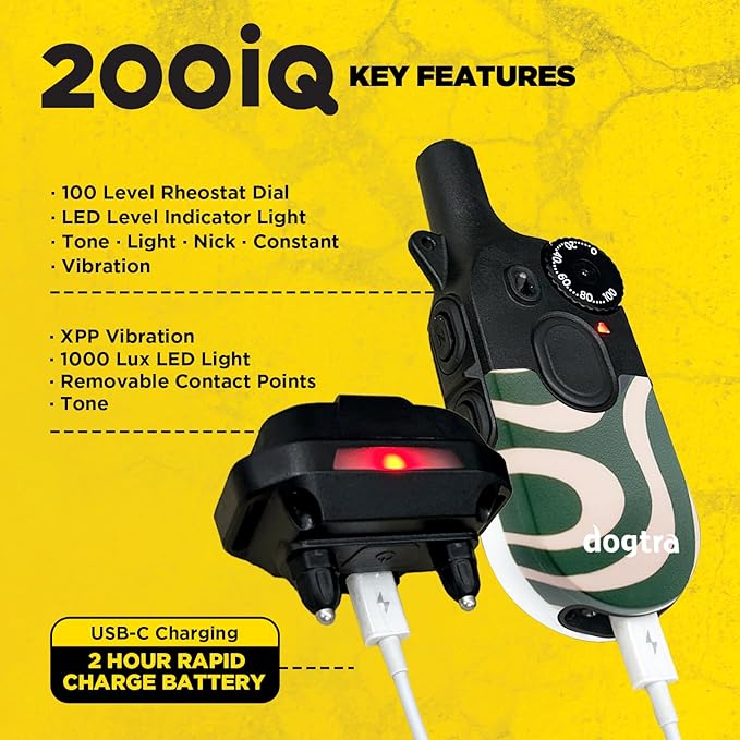 - YOUR EVERYDAY TRAINING PARTNER: Whether you're a first-time dog owner or a seasoned trainer, the 200iQ gives you everything you need to start training on day one. With simple, intuitive controls, you’ll build better communication and trust with your dogs from the very first walk.