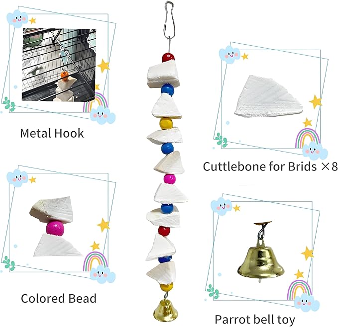 - Non-Toxic & Safe Design: Crafted from natural wood, calcium cuttlebone, and non-toxic ABS plastic, these toys are designed to ensure worry-free playtime for your beloved birds