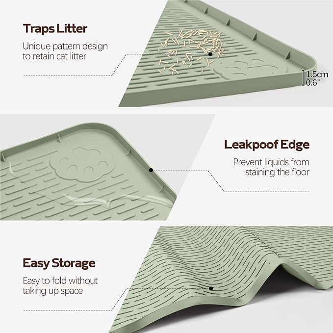 - Comfortable and Lasting Mat: The cat litter mat is made of high-quality silicone, offering a soft texture that protects your cat's paws. Silicone mat is not easy to deform, not easy to damage, and can effectively prevent water seepage, protect your floors