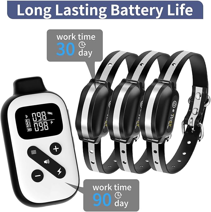 - 【 2 Ways to Control 3 Dogs 】 Using this 3 dog shock collar for Large Dogs, you can control 3 dogs Separately or Simultaneously through different pairing settings. Bark and training collar combo will adapt to your different training needs.