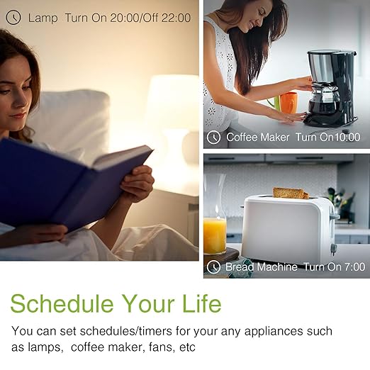 - SCHEDULES&AUTO-OFF TIMER: Easy to set timers and add schedules to connected devices circularly or randomly, making them work as scheduled like auto-off and auto-on.
