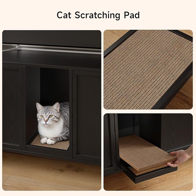 - All-in-One Furniture: Our large wooden litter box enclosure serves as both a cat house and a private enclosed space for litter needs. It blocks dogs from accessing the litter box while doubling as a TV stand, side table, or decorative furniture that blends seamlessly with home decor