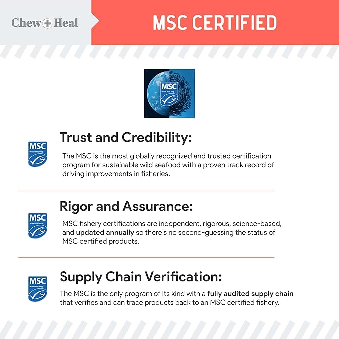 - Chew + Heal's dog fish oil supplement is made with a single ingredient: pure Wild Alaskan Salmon Oil. There are no additives or preservatives.
