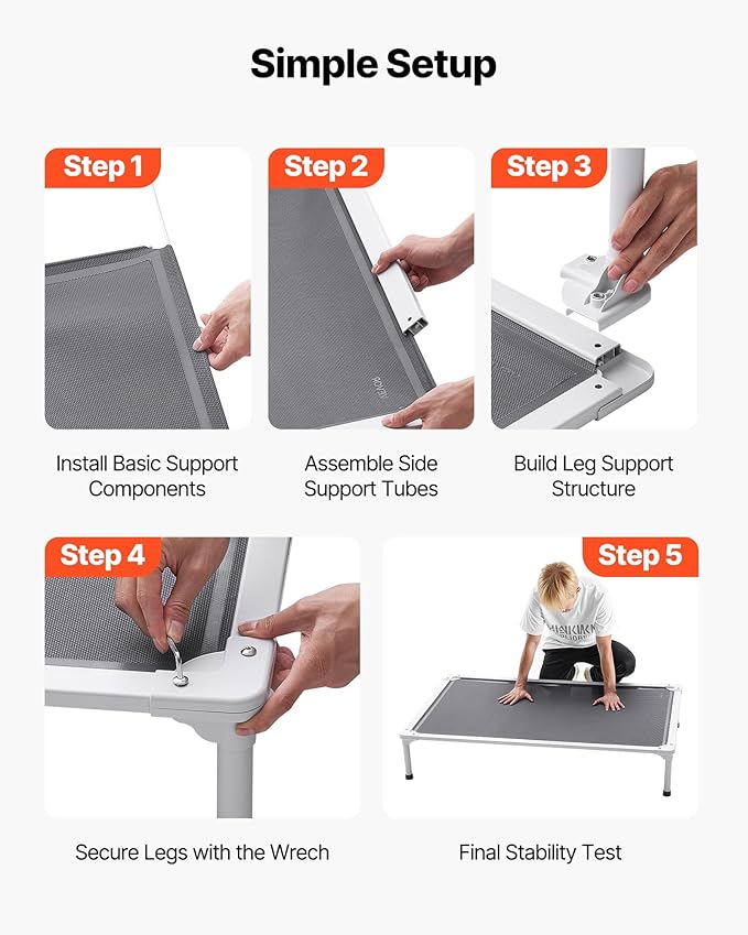 - Tool-Free Quick Assembly: Comes with clear assembly instructions, allowing you to set it up in just 10 minutes. New pet owners can easily assemble it too. The 7 in / 180 mm elevated height keeps your pet off the ground, isolating them from moisture, dust, and cold temperatures. It provides cooling airflow in the summer and can be paired with a blanket in winter for warmth