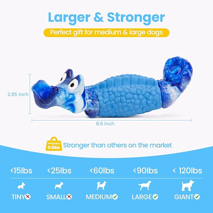 - Squeaky Dog Toys for Aggressive Chewers: The upgraded tough dog toys built-in squeaker stimulate the passion of your pets by making the sound when they bite this large dog toys chewers. Specially designed in blue-color that dogs can see giving added stimulation. This interactive feature makes our dog chew toys great dog toys to keep them busy, reduce boredom, and develop good chewing habits