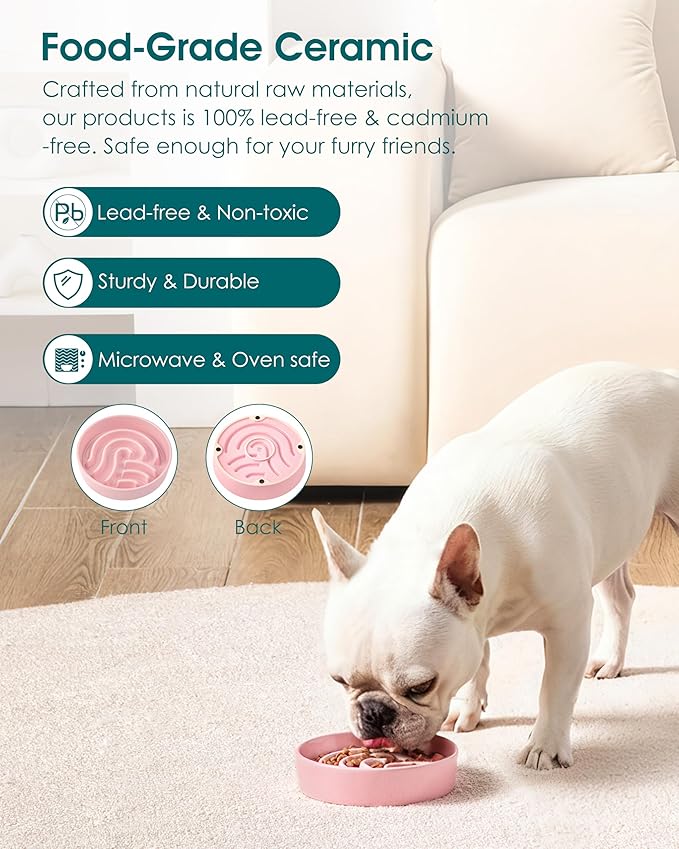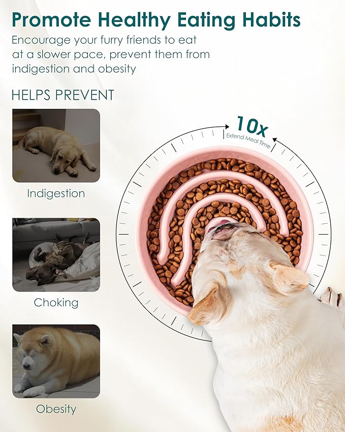- 🐾【ENCOURAGES HEALTHY EATING HABITS】Our ceramic slow feeder dog bowl features a unique maze design that forces your pet to eat slower. This helps prevent bloating, improve digestion, and reduce the risk of choking and vomiting, promoting better overall health for your fast eater.
