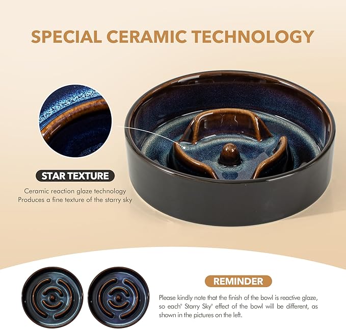 - Healthy Ceramic: Our bowls are made of ceramic—safe, lead-free, non-toxic, and durable. Ceramic is healthy for pets, as studies show plastic bowls can cause black chin issues. Choose our ceramic slow-feeder bowls for a safer, healthier feeding solution.