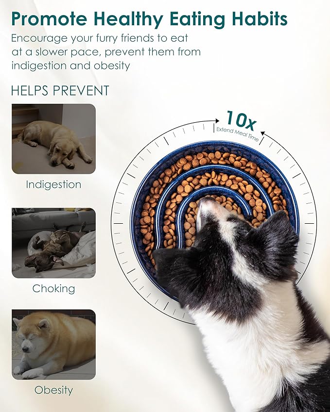 - 🐾【ENCOURAGES HEALTHY EATING HABITS】Our ceramic slow feeder dog bowl features a unique maze design that forces your pet to eat slower. This helps prevent bloating, improve digestion, and reduce the risk of choking and vomiting, promoting better overall health for your fast eater.