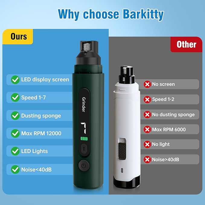 - Dust Sponge Design: No more worrying about nail dust flying everywhere when trimming your dog's nails. Our dust sponge absorbs most grinding dust, keeping floors clean while effectively preventing dust inhalation by both people and pets