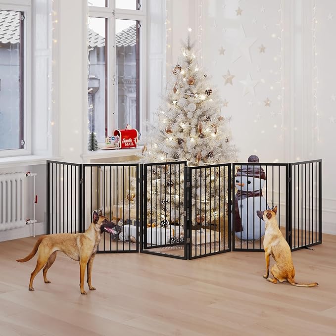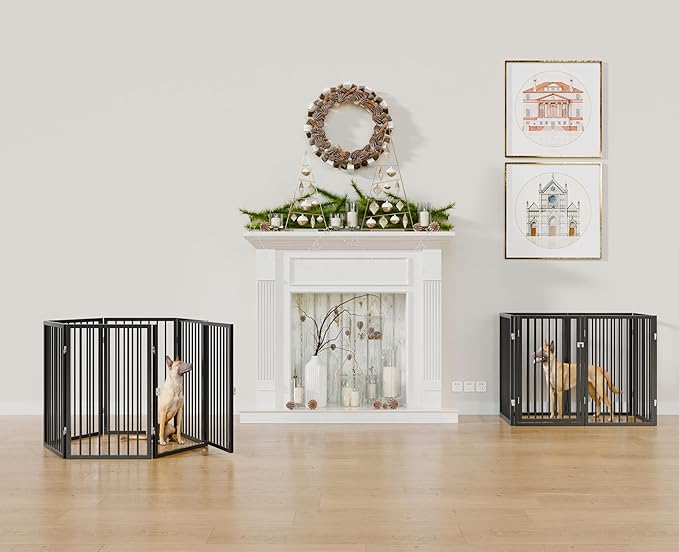 - Folding & Expandable Design: This freestanding pet fence effortlessly folds into a wide Z-shape, seamlessly adapting to hallways, entries, bedrooms, staircases, and other home spaces. You can select various colors to match your home décor, ensuring a perfect fit with your style.