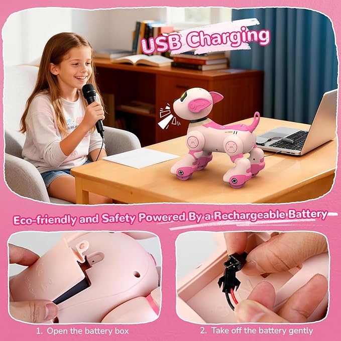 - Endless Playtime: Say goodbye to battery-changing hassles! The smart robot dog will provide 60-80 minutes of fun after 2 hours of charge with USB. Whether it’s a rainy day indoors or a sunny afternoon in the yard, kids can enjoy extended play sessions without interruption. Plus, the battery is removable and easy to charge, adding to the convenience