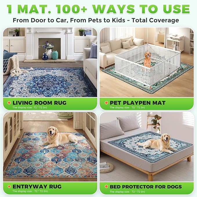 - 【100% Waterproof & Floor Protection】 Built with a premium TPU waterproof barrier that fully blocks leaks, protecting hardwood floors, tiles, and carpets. Ideal as a washable pee pad, carpet protector, food & water bowl mat, or bed/couch cover for dogs, cats, kids, and seniors.