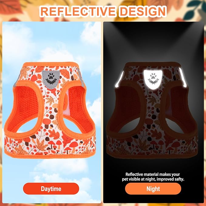EXPAWLORER Thanksgiving Autumn Puppy Harness - Dog Collar and Leash - Soft Mesh Padded Adjustable Step in Small Dog Vest Harness No Pull, Reflective Escape Proof for Outdoor Walking, Orange S