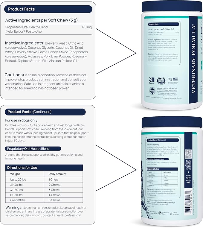 - EPICOR POSTBIOTIC FOR GUT & MOUTH HEALTH – Features EpiCor, a postbiotic that supports a healthy gut microbiome, which plays a role in promoting fresh breath and overall immune function. A unique approach to dog dental support that starts from the inside out.