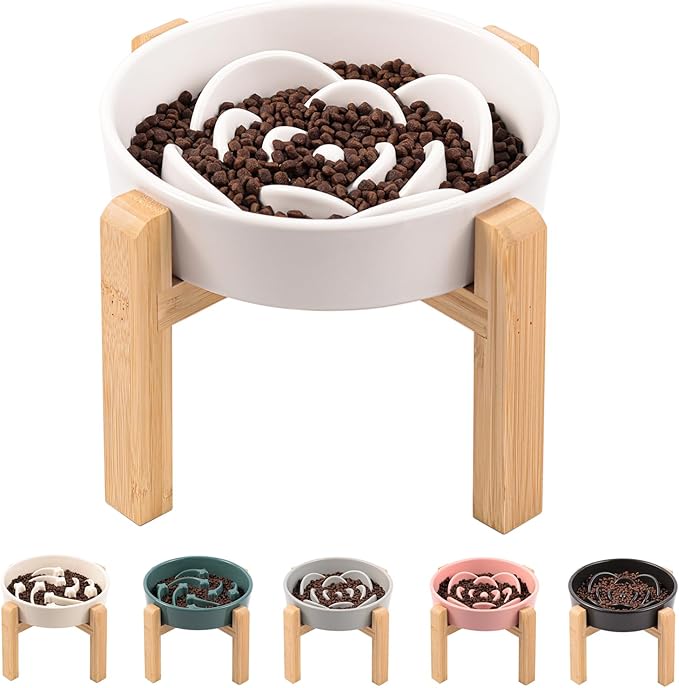 - elevated Ceramic dog bowl provides ease of access to food and water.Reduces bloating and neck strain in dogs. large Slow Feeder Ceramic Material, This bowl is good for fast eater,help for digestion. More Suit For Your Dog: The veterinarian recommends using a ceramic bowl for your dogs. According to investigations, plastic bowls are easy to cause black jaws. If you love your dog, our ceramic slow food bowl will be your best choice. These dog feeder bowls are made from ceramic. Microwave safe, you can heat your dog's food at any time