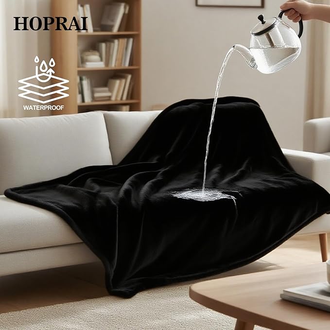 Dog Blanket, Waterproof Reversible Sherpa Fleece Throw Blanket, Furniture Cover for Bed, Couch, Sofa Protection from Liquid Pee and Pet Fur of Puppy, Cat (Black XS20*27inches)