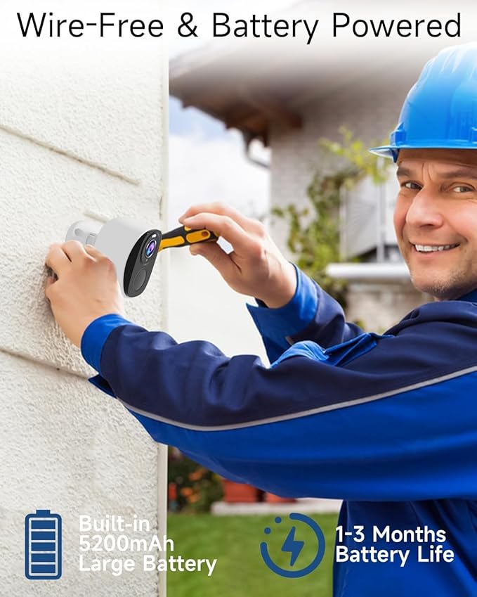 - 【100% Wire-Free & IP65 Waterproof】ELECCTV security camera contains a rechargeable battery, with a variety of power-saving modes to set in the APP, the camera can be used 1-3 month after full charging. The completely wireless camera of the IP65 waterproof level can be easily installed anywhere.
