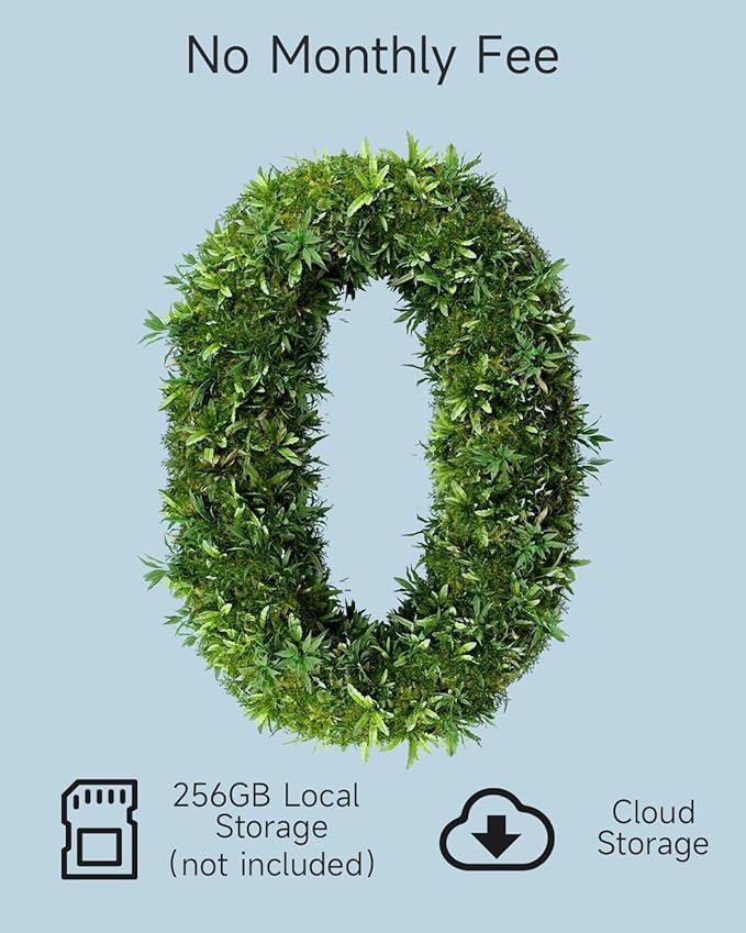 - 【Two storage methods & No Monthly fee】Install [O-KAM Pro] APP (IOS/Android) to set up the security camera. Free 1-day rolling cloud storage for life(No subscription is needed). The videos can be saved at Micro SD card card(NOT included, up to 256GB). The new bird recognition function has been added, and it can distinguish different bird species(subscription required).