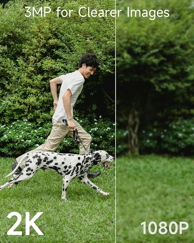 - 【2K QHD Live Video & Color Night Vision】The lens of the security camera adopts a 130° wide-angle design, which can be seen to obtain a wider field of view. With 3MP ultra-high definition, you can see clearer details than 1080P cameras. A stunning full color night vision security camera allows you to get a clear picture even in total darkness.