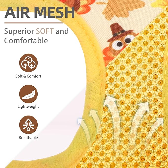 PUPTECK Dog Harness and Leash Set for Small Medium Dogs No Pull Step-in Soft Mesh Puppy Cat Vest Harnesses Reflective at Night Thanksgiving, Yellow Turkey, S